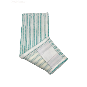 Насадка для швабры МОП плоский микрофибра белая с бирюз полосой абразив 50х13см (уши+карман) а5013/2